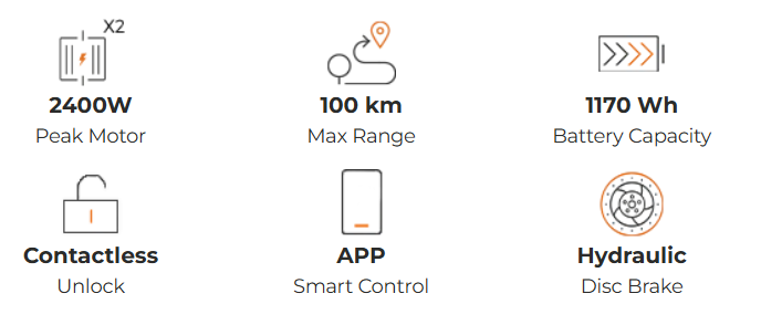 2400W Peak Power Motor 100KM Range Foldable Electric Scooter