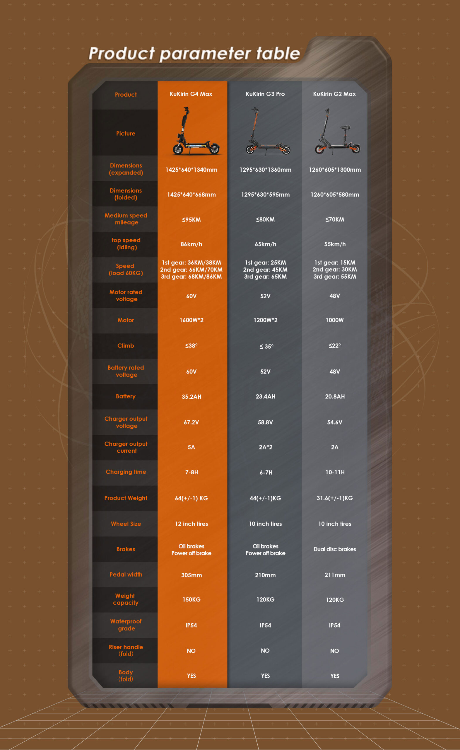 The KUKIRIN G4 Max Electric Scooter is a high-performance model featuring a powerful 60V 35.2Ah battery and dual 1600W motors, ensuring strong and reliable operation. With a remarkable range of up to 95 km per charge and a top speed of 86 km/h, it provides an efficient and exhilarating urban commuting experience. The scooter’s 11-inch pneumatic tires enhance traction and stability, making rides both safe and thrilling. KUKIRIN promises that the G4 Max will transform daily travel with its exceptional convenience and excitement.