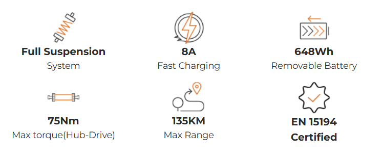 250W 75Nm Boost Power Full Suspension Compact E-bike