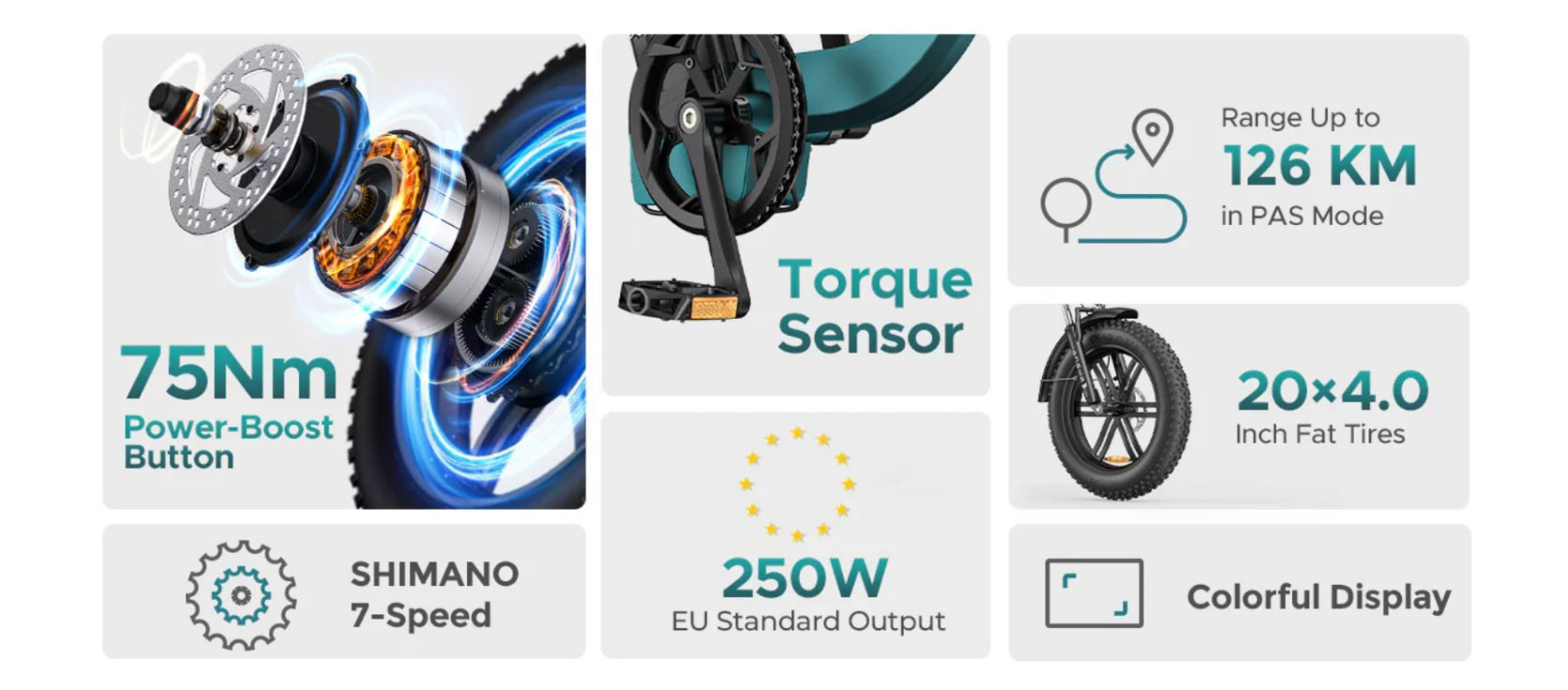 250W 126KM Range Torque Sensor Electric Fat Bike with a Boost Button